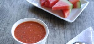 Una versión muy mediterránea es el gazpacho de sandía, de un color rojo intenso. Presenta una sorprendente combinación ácida del tomate junto a la dulzura de la sandía, y es perfecto para preparar en verano, temporada de esta fruta. Para realizar esta receta necesitas: