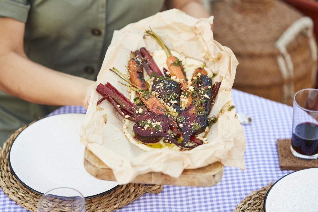 - Encender la brasa y asar sobre ella las zanahorias y remolacha dando la vuelta a los 15 minutos.
