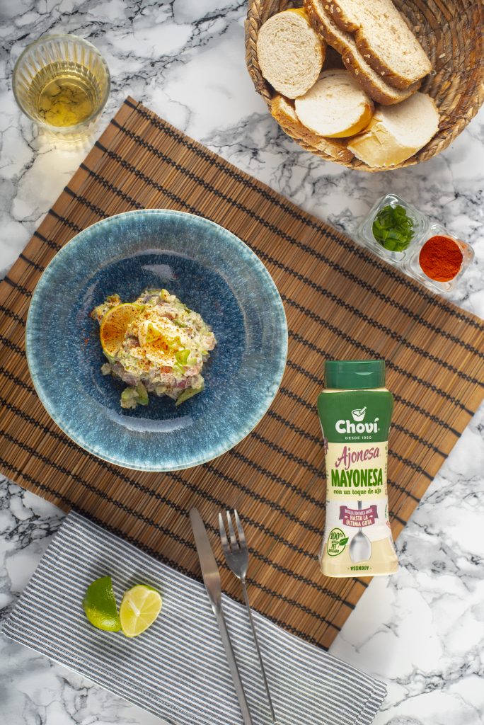 Se trata de un tartar de atún, un plato fresco y sabroso perfecto para una comida entre amigos o en pareja, especialmente para verano, al tratarse de un plato muy fresquito.